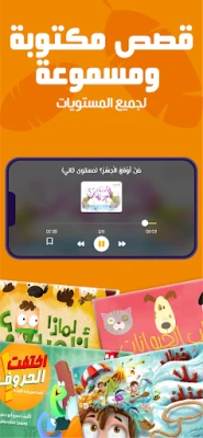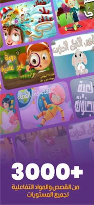 - مكتبة ضخمة من قصص أطفال وروايات يافعين باللغة العربية، مصممة لدعم تعلم القراءة تدريجيًا.