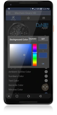 ✔ Color picker to select any color you like for the background, clock hands, text, & numbers