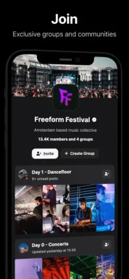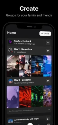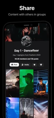 With MEMBER, you can easily create private, invite-only groups that allow all or select group members to post content. Upload any content you create, including images, videos, links, locations and more, in 16:9 or 9:16 format to your private groups.