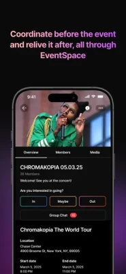 Coordinate before and after the show with EventSpace — your hub for invites, chats, logistics, and media sharing.