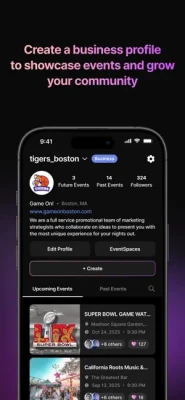 Artists, creators, and organizers can showcase events, engage fans, and build communities through dedicated profiles.
