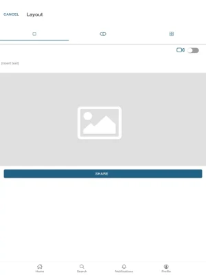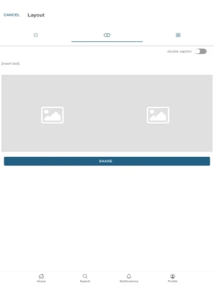 CREATE Click on the add(plus) icon on the application home page, select the template, and add media by clicking the media box and caption using the text field