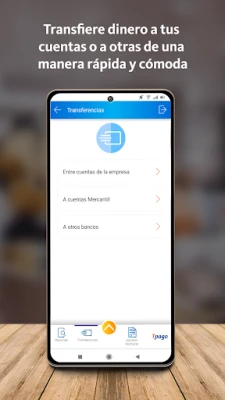 - Realiza tus transferencias entre cuentas de la empresa, a cuentas de terceros Mercantil y a otros bancos nacionales.