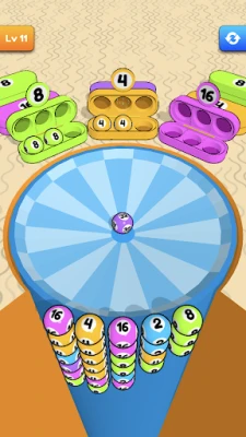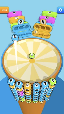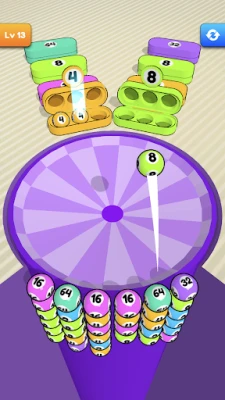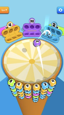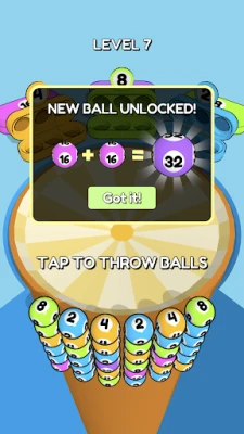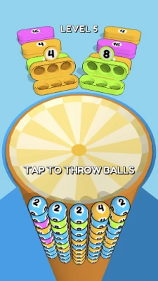 Throw balls to fill the containers. Merge and upgrade balls of the same color to match the containers.