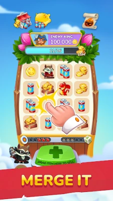 Match the same items together by dragging them on top of each other to merge and get big rewards - bags of gold, protection from other vikings for your village, shields, a chance to attack your enemies!