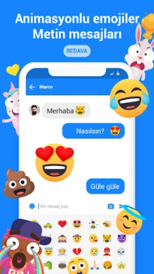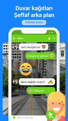Bu mesajlaşma uygulaması iletişimi hızlı ve eğlenceli hale getiren renkli, sezgisel bir tasarıma sahiptir. Mesaj göndermek hiç bu kadar havalı ve büyük emojilere sahip olmamıştı.