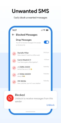 Yerleşik SMS engelleyici ile istenmeyen metin mesajlarını engelleyin. Sadece numaraları kara listeye ekleyin ve spam'siz bir SMS gelen kutusunun tadını çıkarın 🚫📵