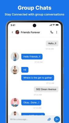 ✔ Stay in touch with friends and family, send group texts, and set scheduled messages after-calls ends, if you're using this Messages app.