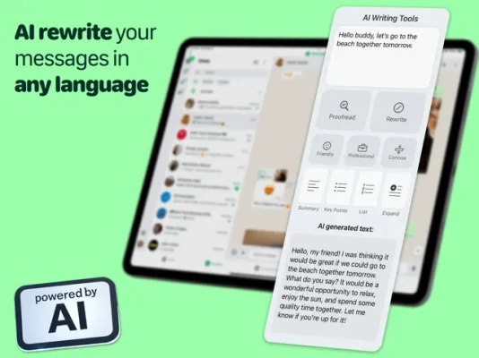 • AI Message Enhancer — rephrase, expand, or summarize chat texts to match your tone