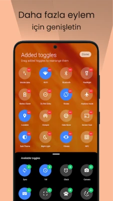 Kontrol merkezinde kameraya, saate ve diğer ayarlara hızlı erişim. Ayarlara ve işlemlere hızlı erişim ile cep telefonunuzu özelleştirmek için birçok güçlü seçenek.
