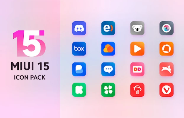 Icon pack inspired by MIUI 15 to customize your device's appearance with a modern and stylish design, reflecting the characteristic aesthetics of the MIUI 15 user interface