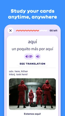 Find a useful looking word while consuming content? Turn it into a high-quality flashcard with one button, and Migaku's spaced repetition language practice algorithm will create personalized study sessions for you. You'll be nudged to review these flashcards periodically, ensuring you remember them.