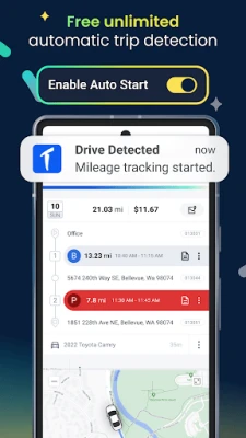 • Truly free automatic tracking: Unlike other leading mileage trackers, we offer unlimited automatic trip detection at no cost