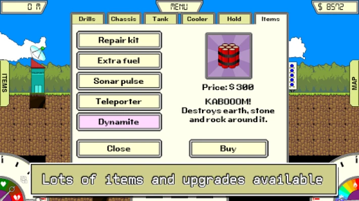 Prepare yourself for an 8-bit adventure underground. Drill through the earth and search for valuable metals and precious stones. Buy upgrades for your vehicle along the way, to drill even deeper.