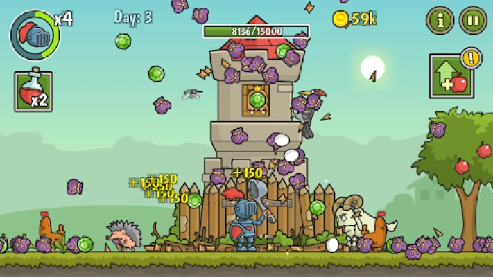 A small idle game. The knight saves the princess. You must destroy the tower. Collect food to increase the hero's strength. Use upgrades and assistants to complete the mission as quickly as possible.