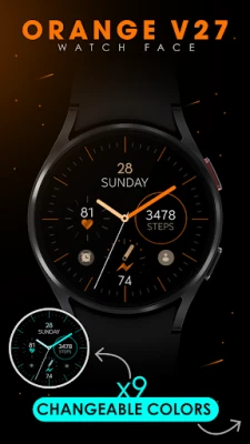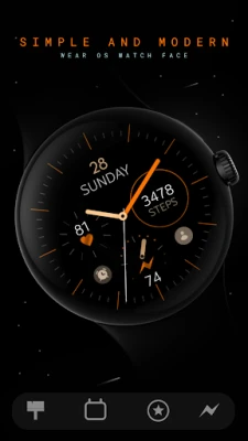 Embrace the elegance and simplicity of this orange analog watch face for Wear OS smartwatch.