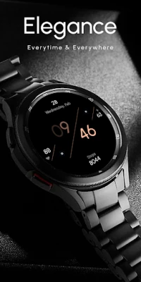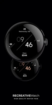 A minimalist Wear OS watch face design, emphasizing simplicity and ease of use. It features a clean, uncluttered display with essential information such as time and date, presented in a sleek and straightforward manner.