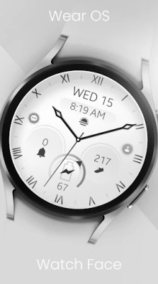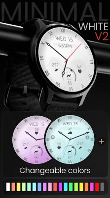 Minimal White v2 is a sleek analog watch face for Wear OS with a clean white design and Roman numerals. It features a minimalist layout with custom app shortcuts, complications, and changeable colors, making it an ideal choice for a personalized and refined look.
