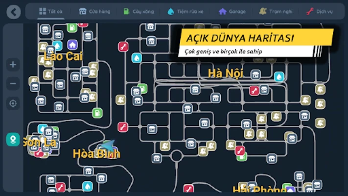 Minitruck Simulator Vietnam oyunundaki Minimap navigasyon sistemi bizim tarafımızdan çok titiz ve detaylı bir şekilde tasarlanmıştır. Nereye gideceğinizi, hangi yöne, ne kadar uzağa ve ne kadar süre gideceğinizi bileceksiniz. Mağazaların, benzin istasyonlarının, dinlenme duraklarının, araba yıkama yerlerinin, araba tamir atölyelerinin, garajların tam Simgeleri var... Durdurmak istediğiniz konumu veya gitmek istediğiniz rotayı işaretlemek için birçok nokta ekleyebilirsiniz.