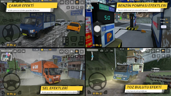 Minitruck Simulator Vietnam'ın, başka hiçbir oyunda olmayan, şimdiye kadar en çok özelliğe yatırım yapılan oyun olduğunu onaylıyoruz. En küçük ayrıntısına kadar bu sürümle dikkatlice ilgilendik. Örneğin, çamurdan geçerken her leke arabaya yapışır, tekerlekler bir su birikintisinden geçerken yanlara su püskürtmenin etkisi. Araç toprak yola girdiğinde duman ve toz etkisi. Yakıt doldururken otomatik olarak hareket eden benzin pompasının etkisi çok gerçekçi.