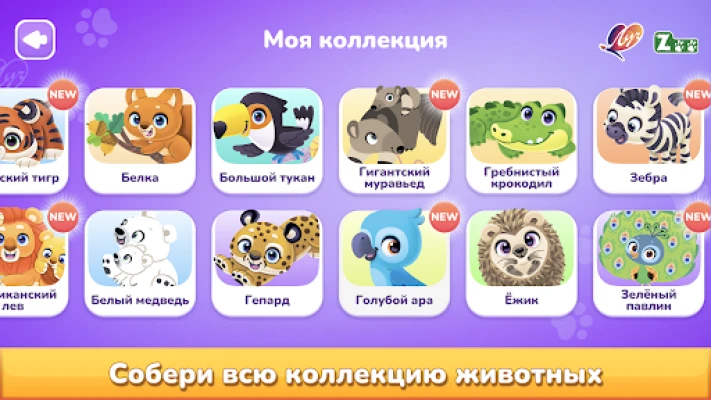 Коллекция животных: соберите до 34 уникальных животных, включая редкие виды.