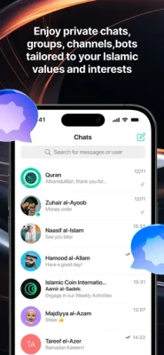 – Dive into private chats, groups, and channels tailored to your Islamic values and interests.