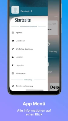 Nutzen Sie die Mobile Event App um jederzeit aktuelle Programmpunkte einzusehen, Profile anderer Teilnehmer abzurufen, durch Push-Benachrichtigungen auf dem neuesten Stand zu sein oder sich durch Event-Interaktion mit dem Veranstalter und anderen Gästen zu vernetzen. Über das Dashboard können Sie schnell und intuitiv zwischen den verschiedenen Features wechseln.
