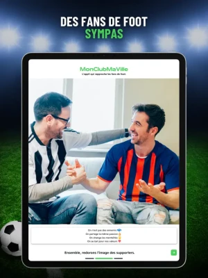 MonClubMaVille est une application géniale destinée à tous les passionnés de football. Notre communauté est bienveillante. On voit la diversité comme une richesse, et on se respecte même si on ne supporte pas le même club. Grâce à l'intégration de Google Map dans l'application, on peut voir où sont les fans de foot autour de soi et discuter en message privé avec eux. Avec les conversations de groupe, on peut débattre en direct de l'actualité footballistique et se faire un nom en tant que supporter.En bref, ici, on se fait des potes avec qui partager notre passion !