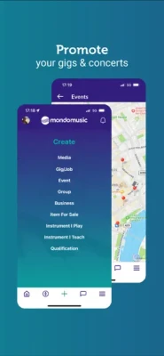 5. Explore & Organize Music Events: Search for musical events by type, location, or name and easily visualize them on a map. Promote your own concerts, manage rehearsals, and create a musical diary to keep track of your engagements. Invite friends to mondomusic to see your performances and expand your audience.