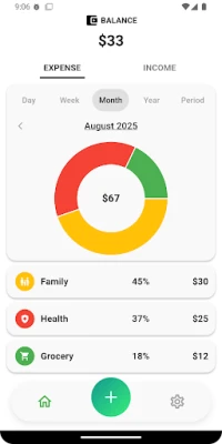 Add expenses or income in seconds. The streamlined interface lets you record your finances on the go, without wasting time.