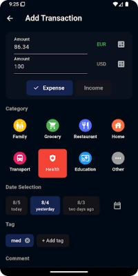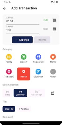 Use pre-defined categories or create your own. Choose icons, colors, and tags to personalize the app to fit your lifestyle.