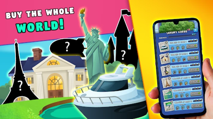 Playing this game, as the biggest money tycoon, you get to grow money, like you grow trees. Hire celebrities to help you with your endless amount of cash, build an empire of investments, cars, houses, luxury items like yachts and jewelry, you can have anything you want! For those who wish to be a billionaire, this clicker money game is a dream come true.