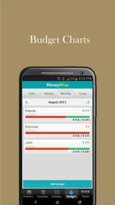 MoneyWise is money manager app that combines an expense manager, a bill reminder and a budget planner!