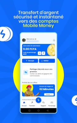 Monniz vous permet d'envoyer de l'argent sur tout type de compte Mobile Money en seulement 2 minutes, sans complications et sans frais cachés.