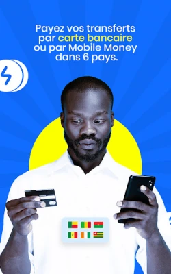 Vous pouvez payer votre transfert via carte bancaire (Visa ou Mastercard), ou avec Mobile Money, selon les options disponibles dans votre pays.