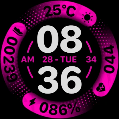 This application requires WEAR OS device to operate properly. Watch face with digital time, date, battery level, heart rate, step count, weather info and color options.