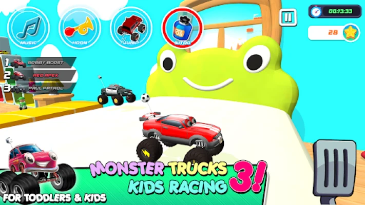 Küçük çocuklar ve okul öncesi yaştaki minikler için Canavar Kamyonlar yarış oyunu! Bu, popüler çocuk canavar kamyon oyununun 3. serisi! Eğer çocuklarınız canavar kamyonlara bayılıyorsa, bu oyun tam onlara göre!