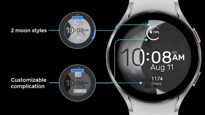 This is a simple Wear OS watch face with a changing background based on the moon phase. It is divided into two styles: photographic and illustration.