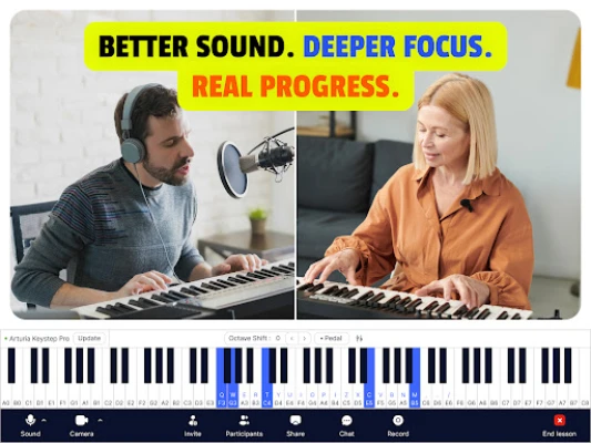 — Sheet music and PDF upload. Annotate in real time, practice tricky parts together.