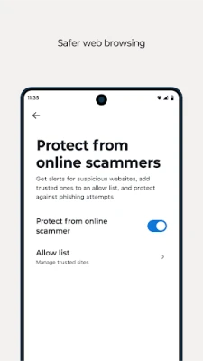 Leverage the power of AI-based features like Enhanced security scan and Protect from online scammers.