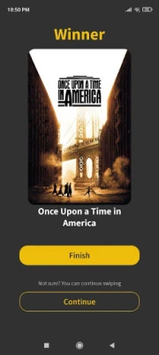 Swipe your way through a vast movie library to pick the one and only that you and your group likes. Tap a card to see movie details to get additional movie info. You can swipe movies alone or with any number of friends. Choose multiple filters to create a room with filters that suit your company and wait for your friends to join you. Joining rooms is super easy! Just scan the QR-code from room creator screen (you can also enter the code manually). After that just swipe films until you get your match. No match? No worries, you can always start again with different search options.