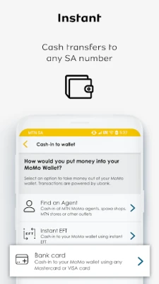 Transfer money to another MoMo wallet or in the form of a cash voucher to any South African cellphone number