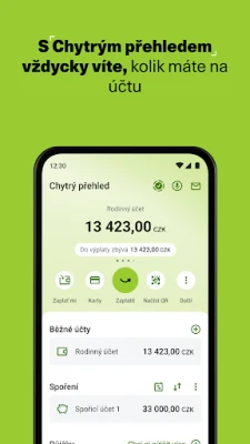 Stačí například mrknout na úvodní obrazovku aplikace s Chytrým přehledem a hned vidíte, kolik máte na běžném i spořicím účtu nebo jak to vypadá s půjčkou.