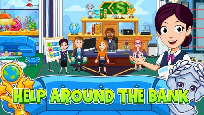 Bir bankada neler olup bittiğini merak ettiğiniz oldu mu? My City: Banka ile kendi hikâyenizi yaratacak ve bir bankada olup biten her şeyi keşfedeceksiniz. My City: Banka, tıpkı sizin yerel bankanız gibidir ve tamamen size aittir. Onu keşfedebilir ve istediğiniz gibi yönetebilirsiniz. My City: Banka, size sadece bir banka ortamını veya ofislerini sağlamakla kalmıyor. Aynı zamanda banka kapandıktan sonra çocuklarını ziyaret etmeye giden zengin bankacıların evini ziyaret etme imkanı tanıyor.