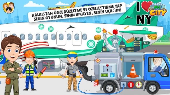 My City: Havaalanı'na hoş geldin. Oynamanı ve keşfetmeni bekleyen bir sürü içerikle dolu tıpkı gerçek bir havaalanı gibi. Biniş kartını hazırla ve güvenlikten geçmeden önce valizlerini teslim et, gümrüksüz satış mağazasını ziyaret ettikten sonra uçaktaki yolculara katıl. Bu oyunu her oynadığında bir sürü farklı eğlence bulacaksın. My City: Havaalanı oyunu, uçağı hazırlamadan kalkışa, birinci sınıf yolcularla ilgilenmeye kadar kendi hikayelerini ve maceralarını yaratmana olanak tanır. Uçuşun kaptan pilotu ol veya sadece sırtını koltuğa yasla ve kontrol kulesinden tüm uçuşların programa göre ilerlemesini sağla! Macera dünyanın her yerinde ama eğlence senin hayal gücünle başlar!