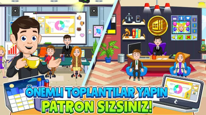 Bir yetişkin olmanın ve ofiste çalışmanın nasıl bir şey olduğunu keşfetmek ister misin? My City : Ofis kendi ofis maceranı yaratabileceğin bir yer. Patrona ait olan bir ev ve dört harika iş yeri ile Pazartesi sabahları hiç bu kadar heyecanlı olmamıştı! Önemli toplantılar düzenleyin. Acaba ayın çalışanı ödülünü kim alacak? Televizyon istasyonunda veya spor salonunda çalışmak ister misin? Yeni My City : Ofis oyununda her şey mümkün !