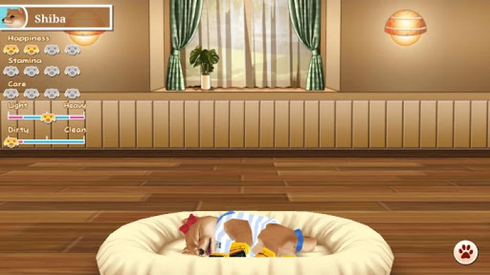 Touch the screen and your puppy will come to you. Use your finger to pet