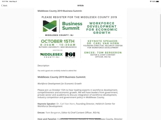 The My Middlesex County App puts our latest news, updates, and services at users' fingertips. They may browse by topic and get push notifications of the most pertinent information, like emergency updates. Stay updated with County business, as it happens.