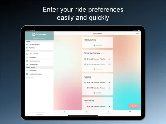Organize your carpools effortlessly with MyCarpoolApp!MyCarpoolApp is the perfect solution for small, trusted groups like coworkers, study buddies, or neighbors who regularly share rides. The app helps you plan trips efficiently, split costs fairly, and keep everything under control at all times.