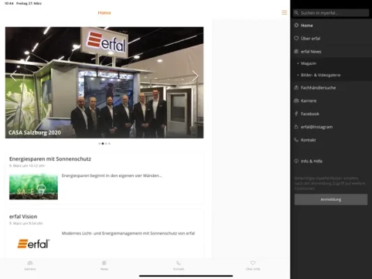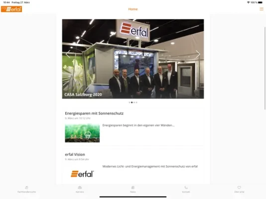 myerfal ist die digitale Kommunikations- und Informationsplattform der erfal GmbH & Co. KG. Kunden, Partner, sowie Mitarbeiter können sich schnell und einfach über das Unternehmen informieren. Endverbraucher können direkt die Fachhändlersuche nutzen, um den passenden Berater in ihrer Nähe zu finden und es gibt spannende Beiträge im Magazinbereich zu entdecken. Das Angebot der App wird durch den Zugriff auf aktuelle Stellenanzeigen ergänzt. Push-Benachrichtigungen und verschiedene Newsfeeds informieren die User zeitnah über das aktuelle Firmengeschehen. Durch verschiedene Formulare werden beispielsweise Unternehmensumfragen vereinfacht.